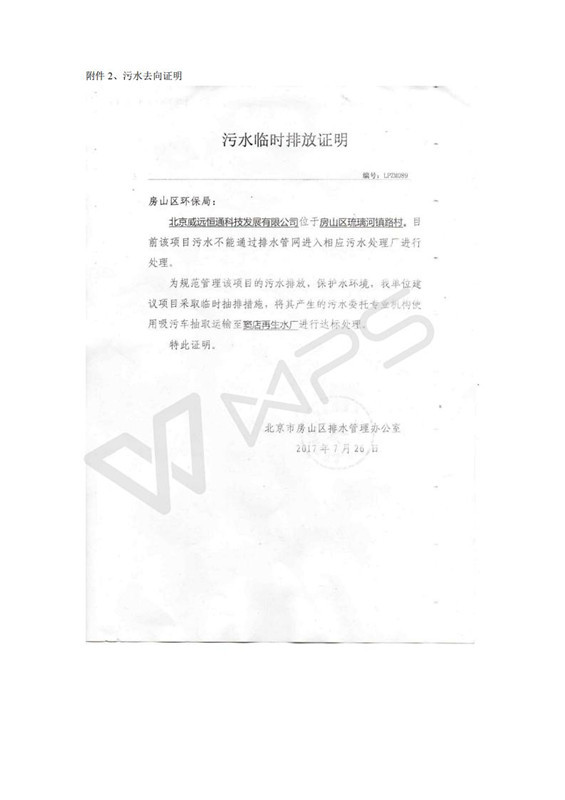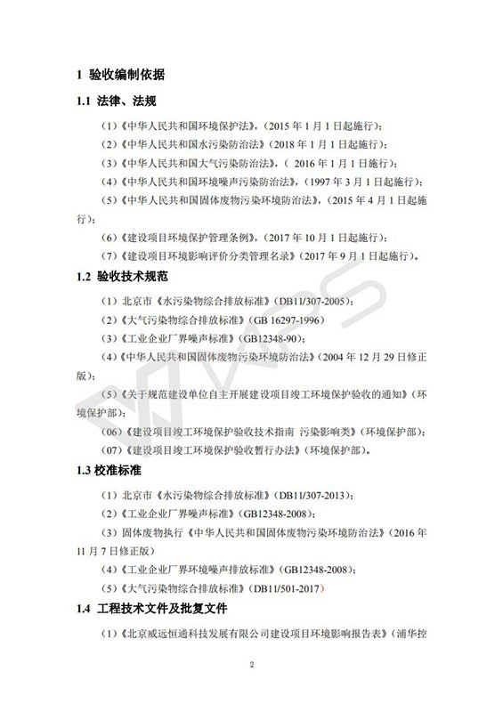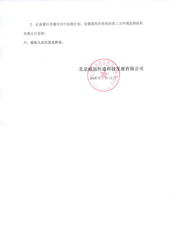 2018年2月12日,北京威遠(yuǎn)恒通科技發(fā)展有限公司根據(jù)《建設(shè)項(xiàng)目竣工環(huán)境保護(hù)驗(yàn)收暫行辦法》,嚴(yán)格依照國(guó)家有關(guān)法律法規(guī)、建設(shè)項(xiàng)目竣工環(huán)境保護(hù)驗(yàn)收技術(shù)規(guī)范、環(huán)境影響評(píng)價(jià)報(bào)告表和審批部門審批決定等要求對(duì)本項(xiàng)目進(jìn)行驗(yàn)收。