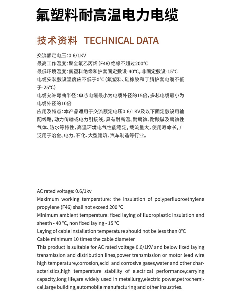 應(yīng)用及特點(diǎn):本產(chǎn)品適用于交流額定電壓0.6/1KV及以下固定敷設(shè)用輸配線路,動(dòng)力傳輸或電力引接線,具有耐高溫、耐腐蝕、耐酸堿及腐蝕性氣體、防水等特性,高溫環(huán)境電氣性能穩(wěn)定,載流量大,使用壽命長,廣泛用于冶金、電力、石化、大型建筑、汽車制造等行業(yè)。